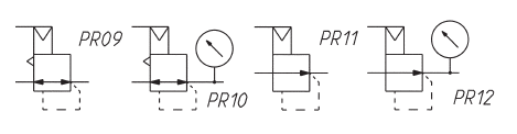PR09 = регулятор зі скиданням тиску PR10 = регулятор зі скиданням тиску і манометром PR11 = регулятор без скидання тиску PR12 = регулятор без скидання тиску і з манометром |