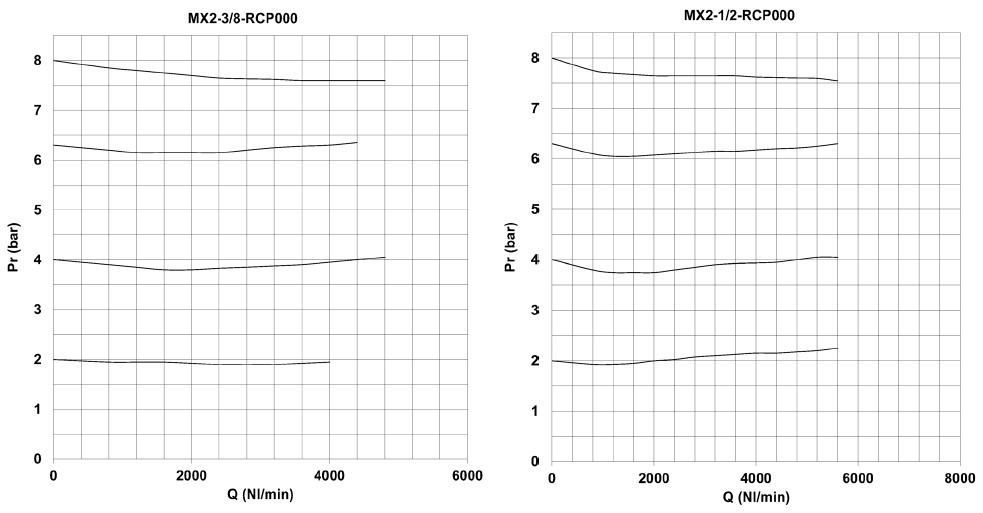 | Pr = Тиск на виході (бар) Q = Витрати (Нл/хв) Тиск на вході = 10 бар |