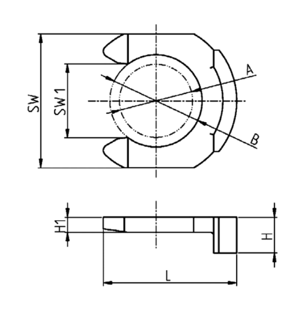 | Мод. | A | B | H | H1 | L | SW | SW1 | Вага(г) |